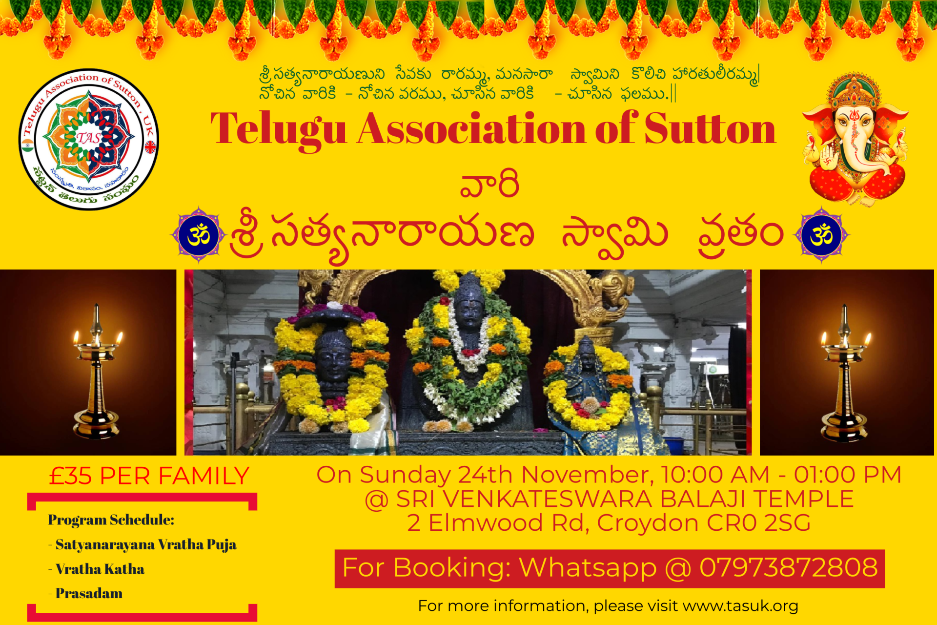 3. Satyanarayana Swami patam (and roopu: optional)